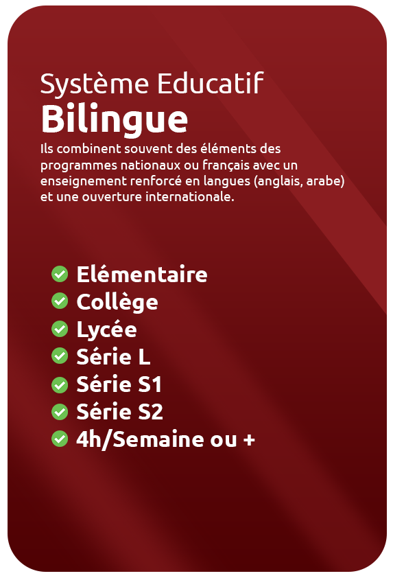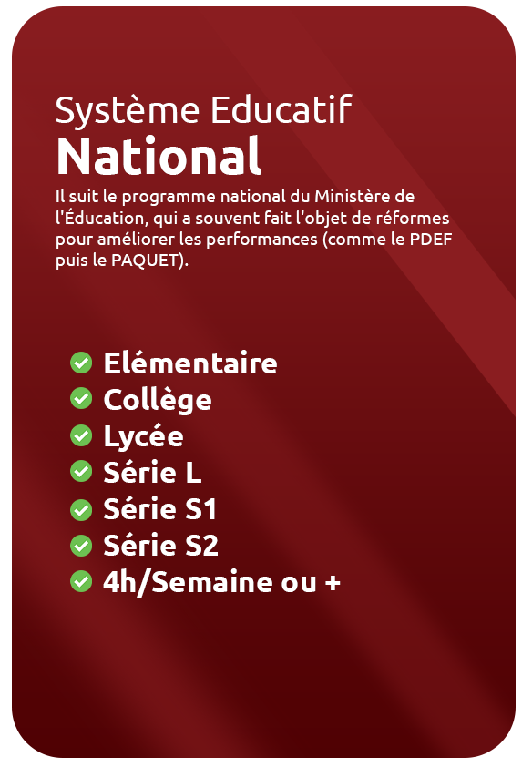 Les élèves qui changent de système (passant d'une école française à une école nationale, ou inversement) ont souvent de grandes difficultés d'adaptation. Votre encadrement peut assurer une transition fluide.